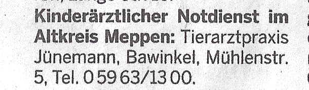 In der Lingener Tagespost vom 05.10.2013 wurde die nachfolgende Anzeige in der Rubrik Wochenend-/Notdienste abgedruckt: